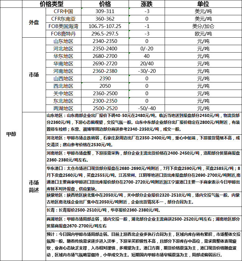甲醇周报
