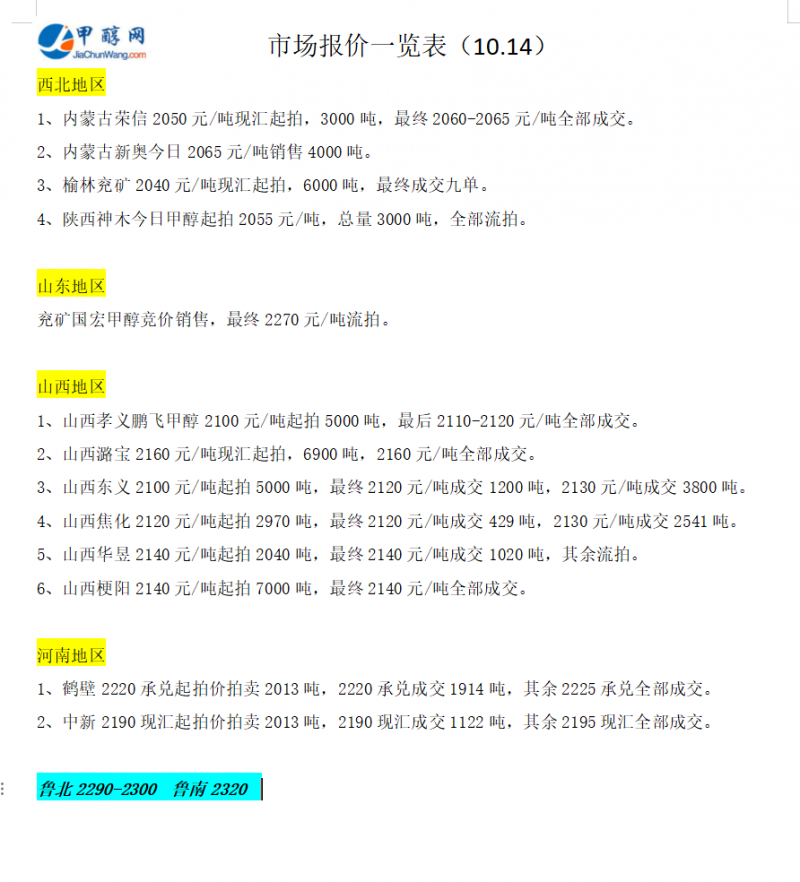 市场动态一览表(10.14)