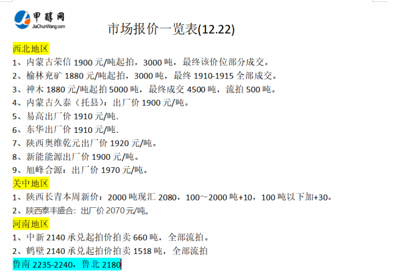 市场报价一览表