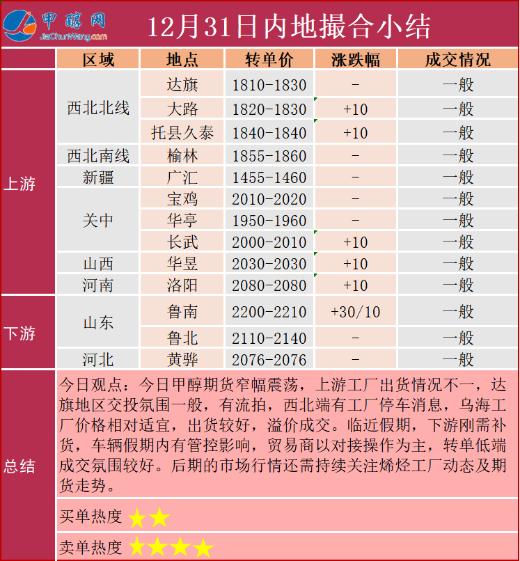 12月31日市场报价一览表