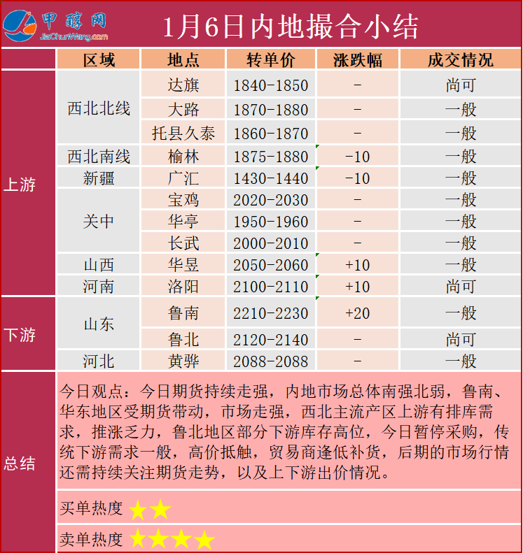 1月6日市场报价一览表