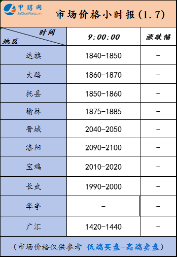 1月7日市场报价一览表