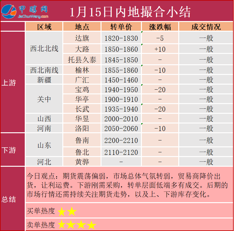 1月15日撮合小结