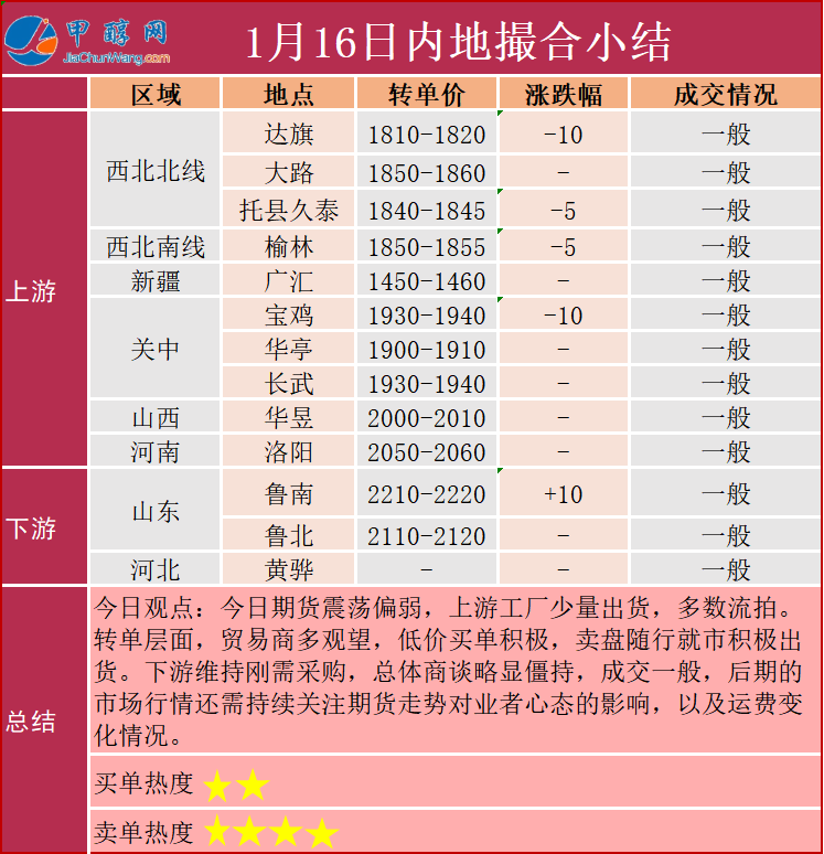 1月16日撮合小结