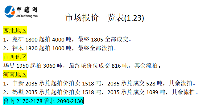 1月23日市场报价一览表