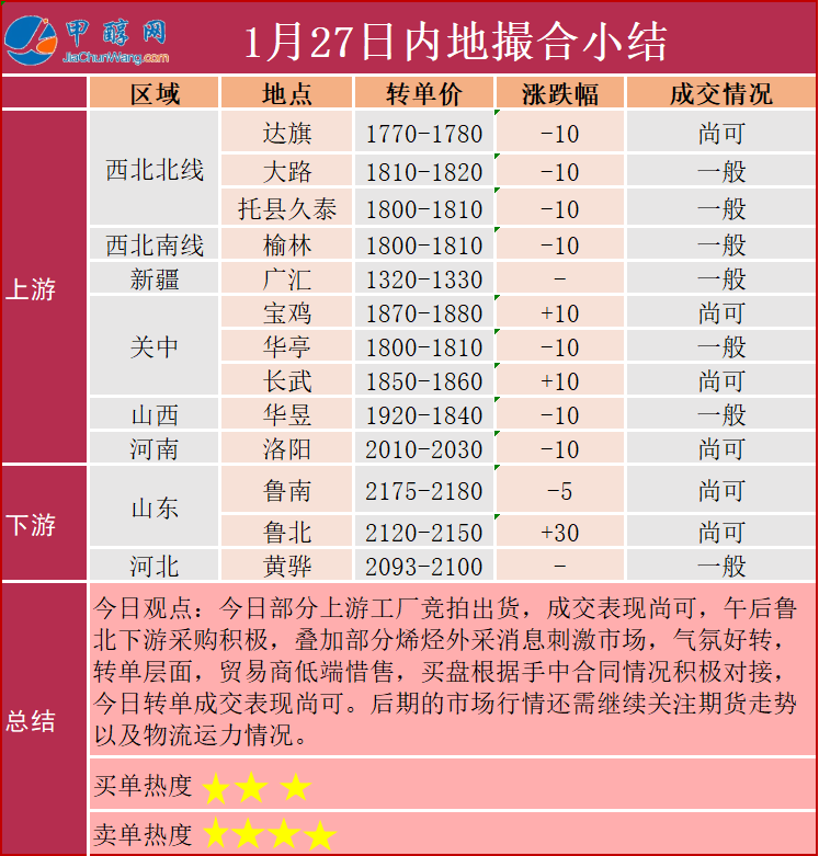 1月27日市场报价一览表