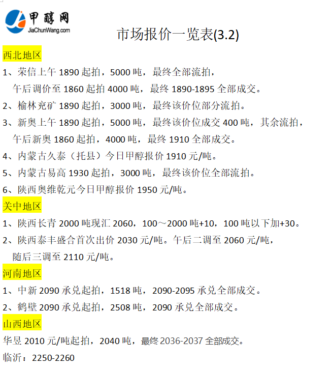 3月2日市场报价一览表