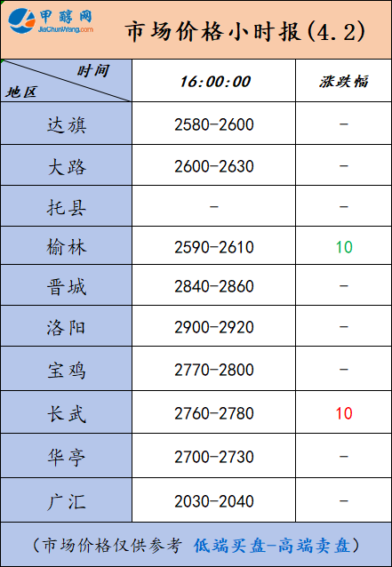 4月2日市场报价一览表