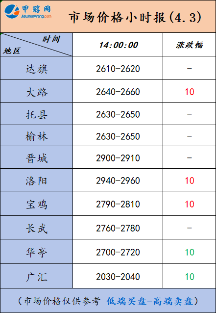 4月2日市场报价一览表