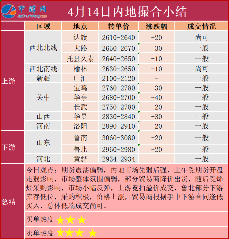 4月14日市场报价一览表